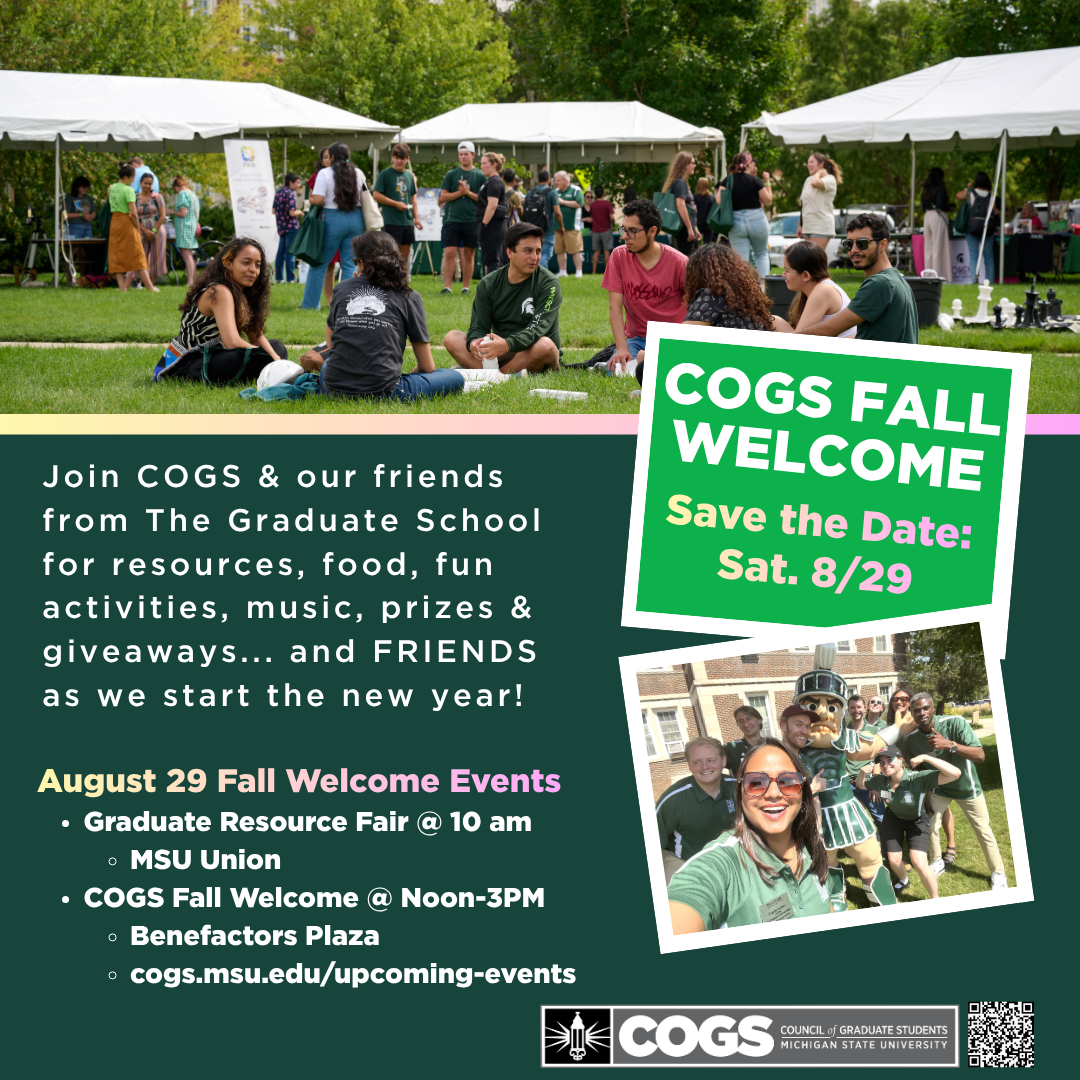 The Council of Graduate Students is the authorized student government on campus representing all graduate/professional students at Michigan State University. Our mission is to promote the academic, social, and economic goals of graduate and professional students.