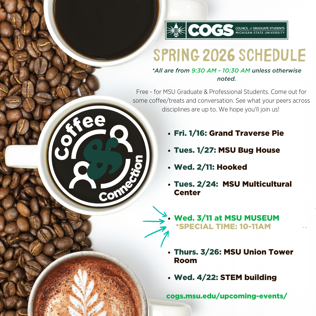The annual GAC is the result of hard work and planning by our all-graduate & professional student committee. Want to volunteer? Send us an email to office@cogs.msu.edu.